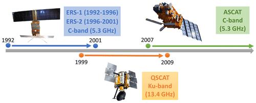 11. A global long-term, high-resolution satellite radar backscatter data record (1992–2022+): merging C-band ERS/ASCAT and Ku-band QSCAT.